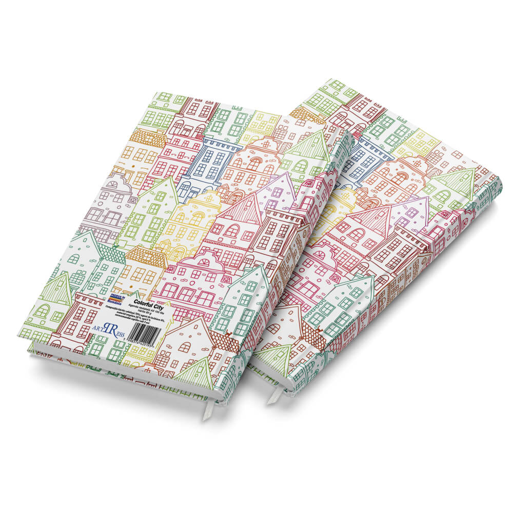 Agenda A5 Nedetata Artpress, Colorful City, 100 File, Coperta Buretata Lucioasa, Multicolor, 80 g/m²