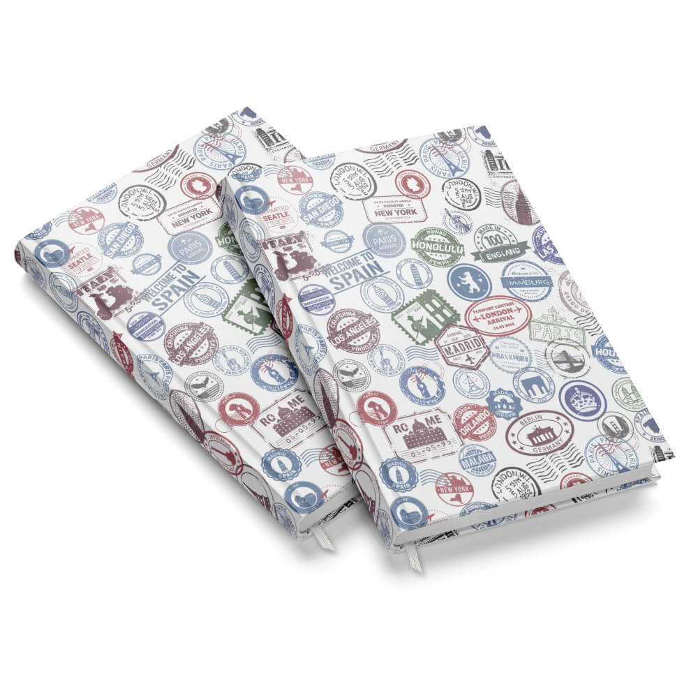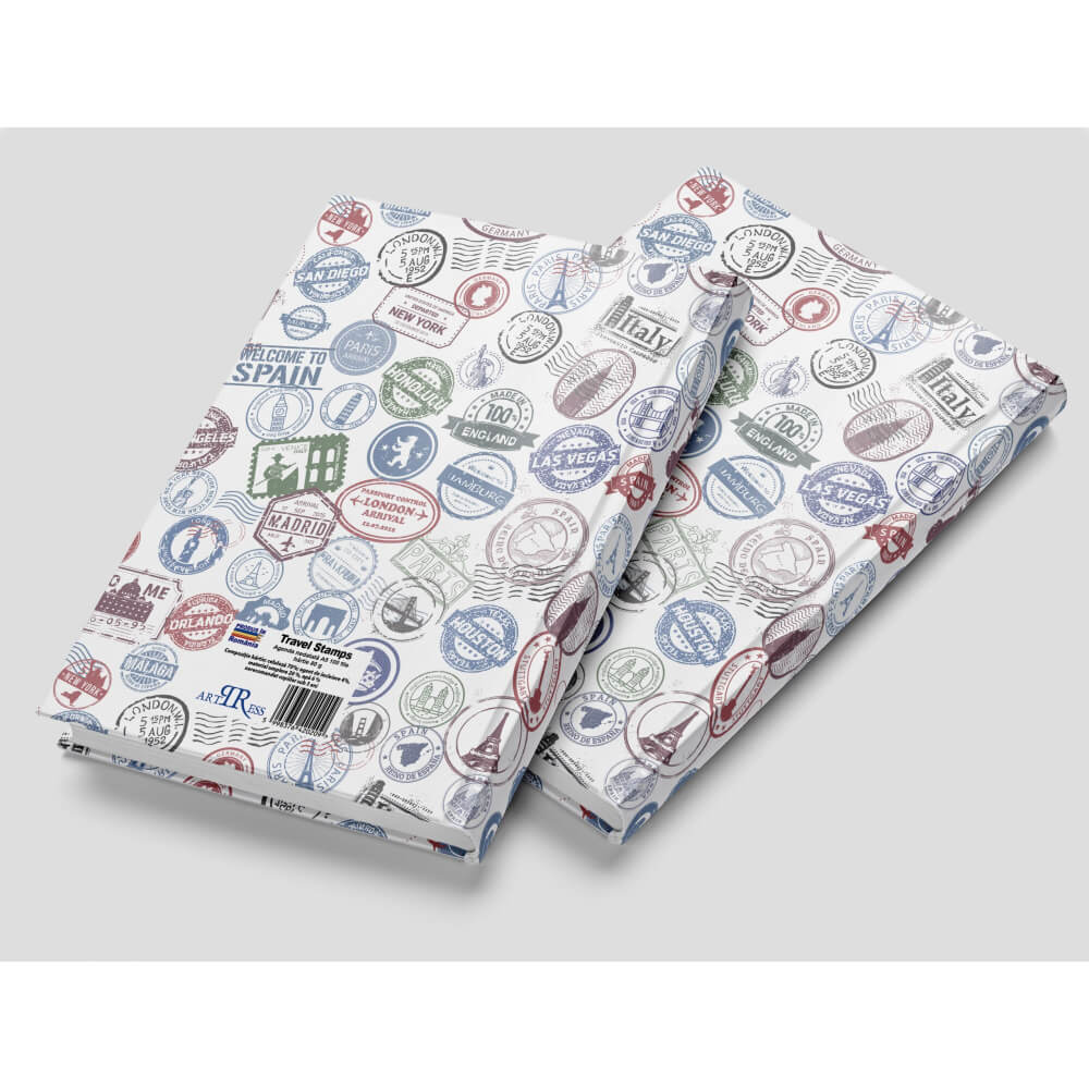 Agenda A5 Nedetata Artpress, Travel Stamps, 100 File, Coperta Buretata Lucioasa, Multicolor, 80 g/m²