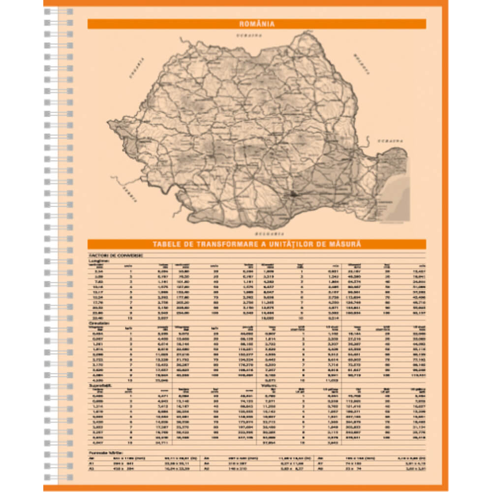 192 de file din hartie alba calitativa care sunt prinse in spirala;