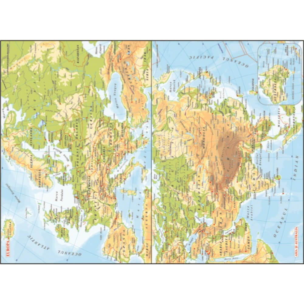 in limba romana, engleza, franceza si imprimata in culorile visiniu si gri;