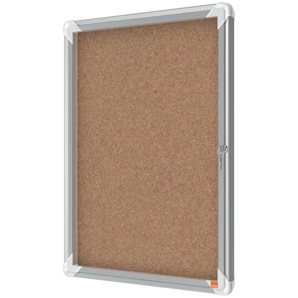 Avizier NOBO Premium Plus, interior, pluta, 4x A4, cu usa si cheie, natur