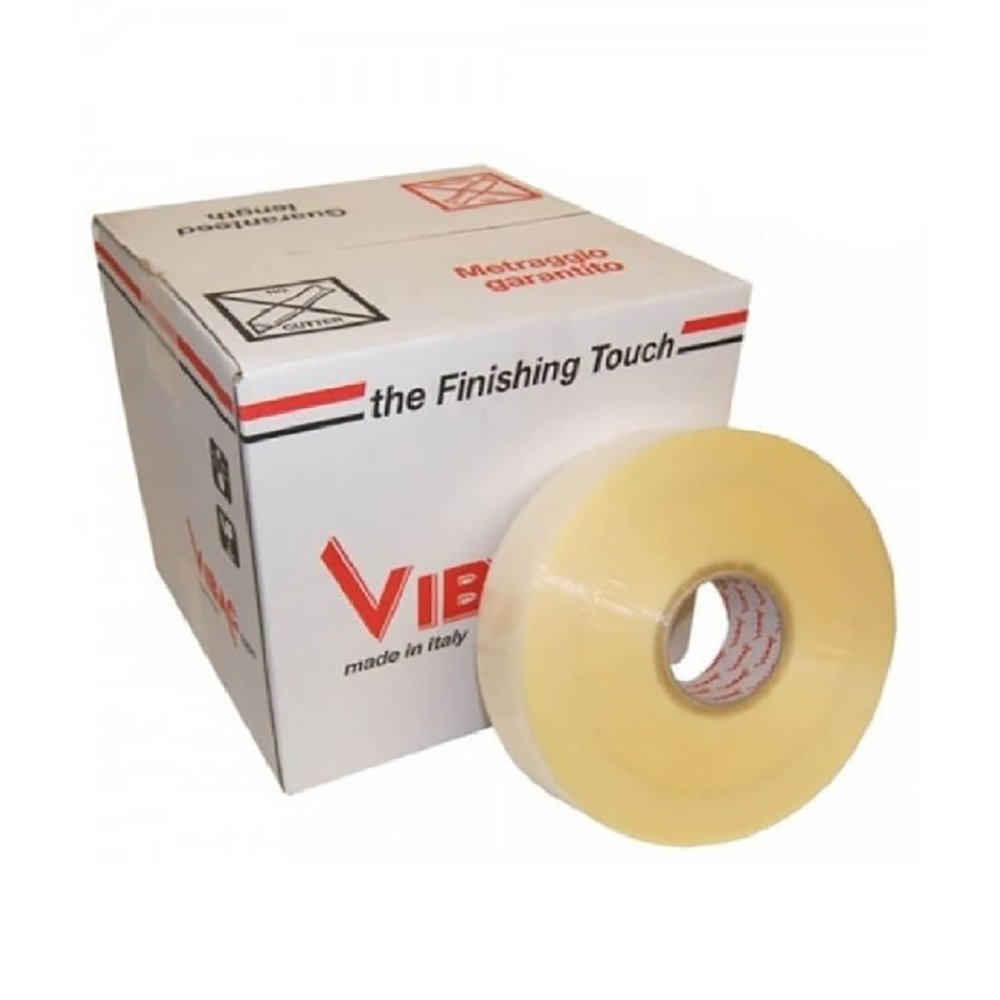 Iti punem la dispozitie banda adeziva transparenta VIBAC pe suport BOPP, cu adeziv acrilic, de marimea 48mm x 990m, realizata pentru sigilarea cutiilor de diferite dimensiuni pe linii de ambalare automata.