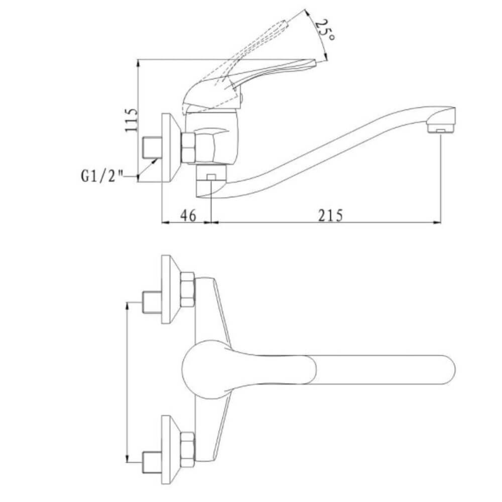 Baterie Zinc pentru Bucatarie Sanobi SanQ, Pipa Lunga, Montare Perete, Finisaj Cromat, Baterii Bucatarie, Baterie Bucatarie Pipa Lunga, Baterii Chiuvete Bucatarie, Baterie Chiuveta Bucatarie cu Pipa Lunga, Baterii Sanitare