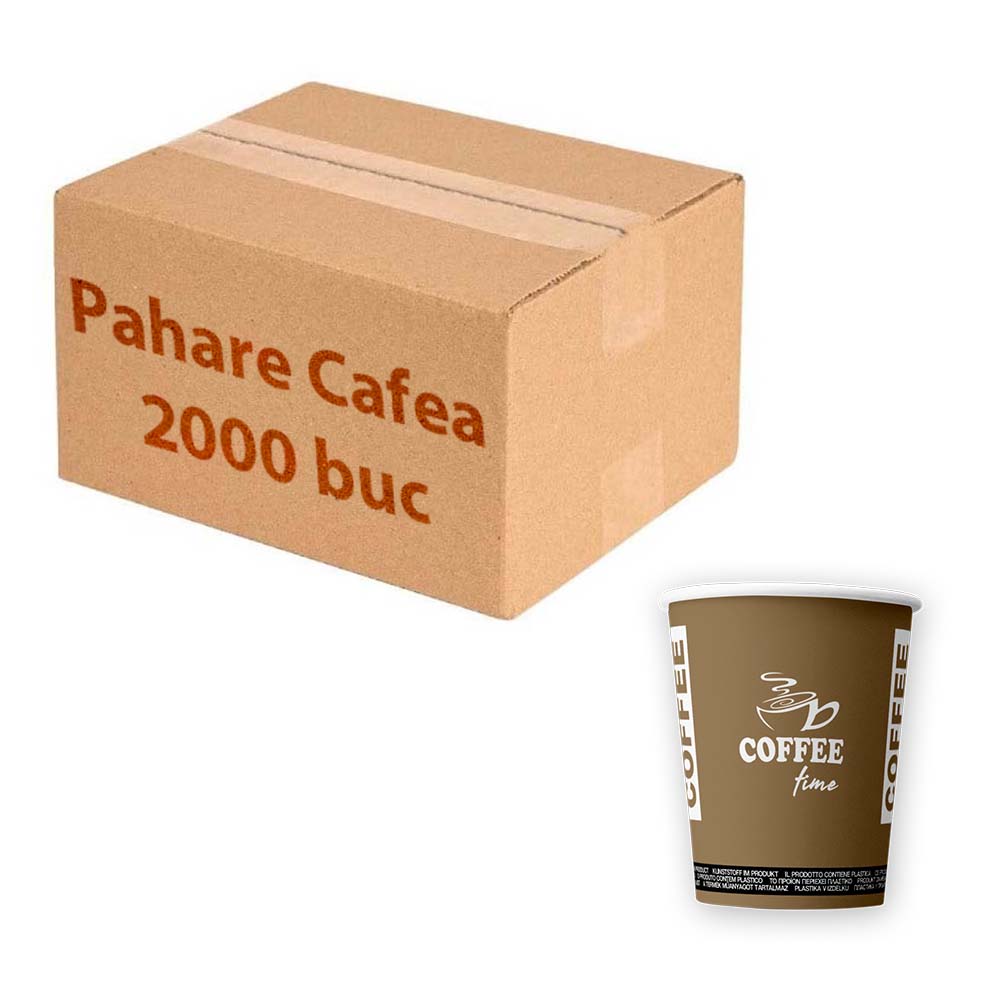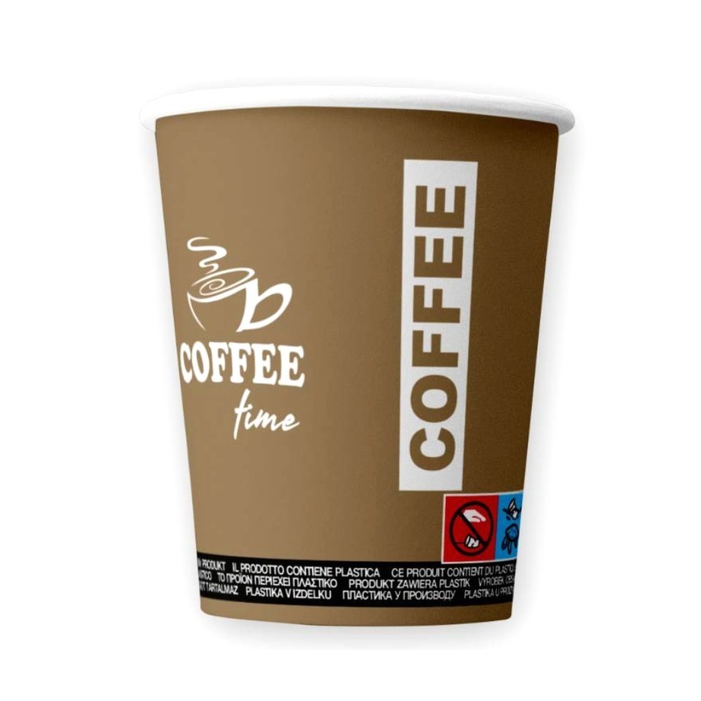 Bax 2000 Pahare din Carton 7 OZ Coffee Time, Carton Alb Printat Maro