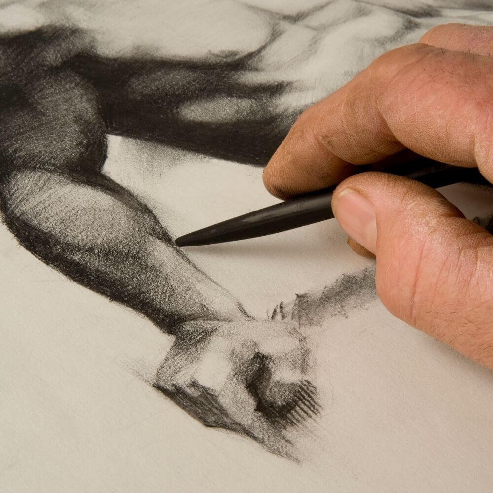 desen cu grafit, creioane colorate, carbune, precum si pasteluri cretate,
