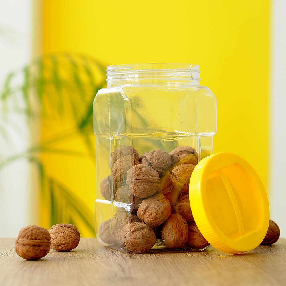 Borcan Pet Patrat cu Capac, 2 L, Culoare Recipient Transparent, Culoare Capac Galben, Borcan Pet, Borcan Patrat, Borcan cu Capac, Borcan Pet cu Capac, Borcan Plastic, Flacon Plastic, Borcan 2 L