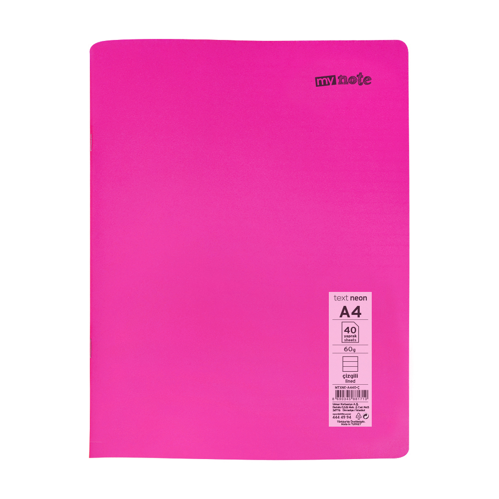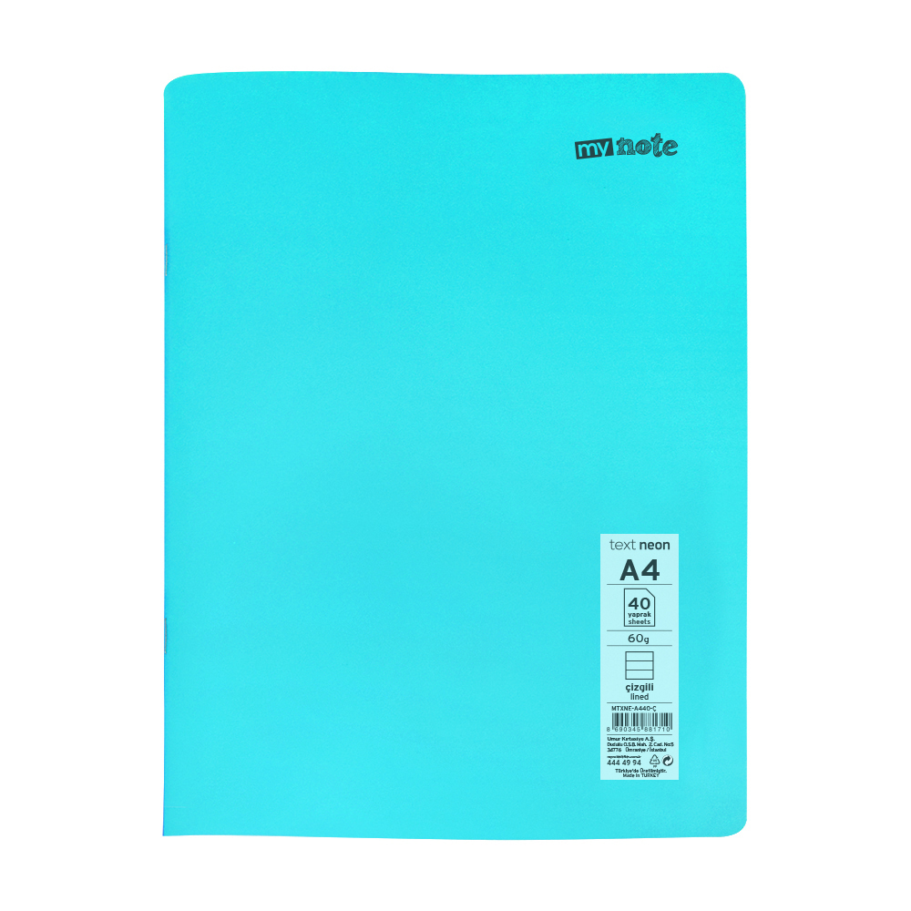Caiet capsat Mynote, format A4, 40 file offset 60 g/mp, liniatura dictando, coperta PP neon, mix de 8 culori