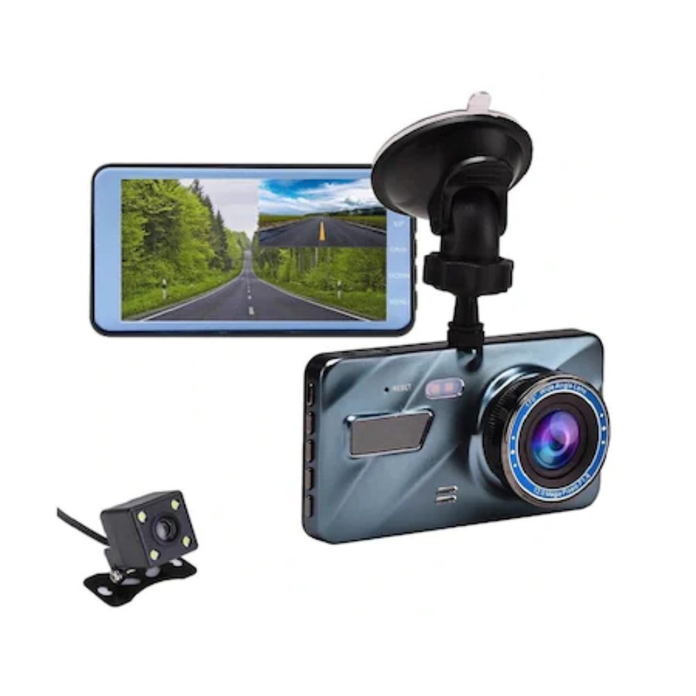 Camera de Bord Dubla, Super HD 1296P, Ecran 4 Inchi, Baterie Incorporata 300 mAh, Culoare Albastra
