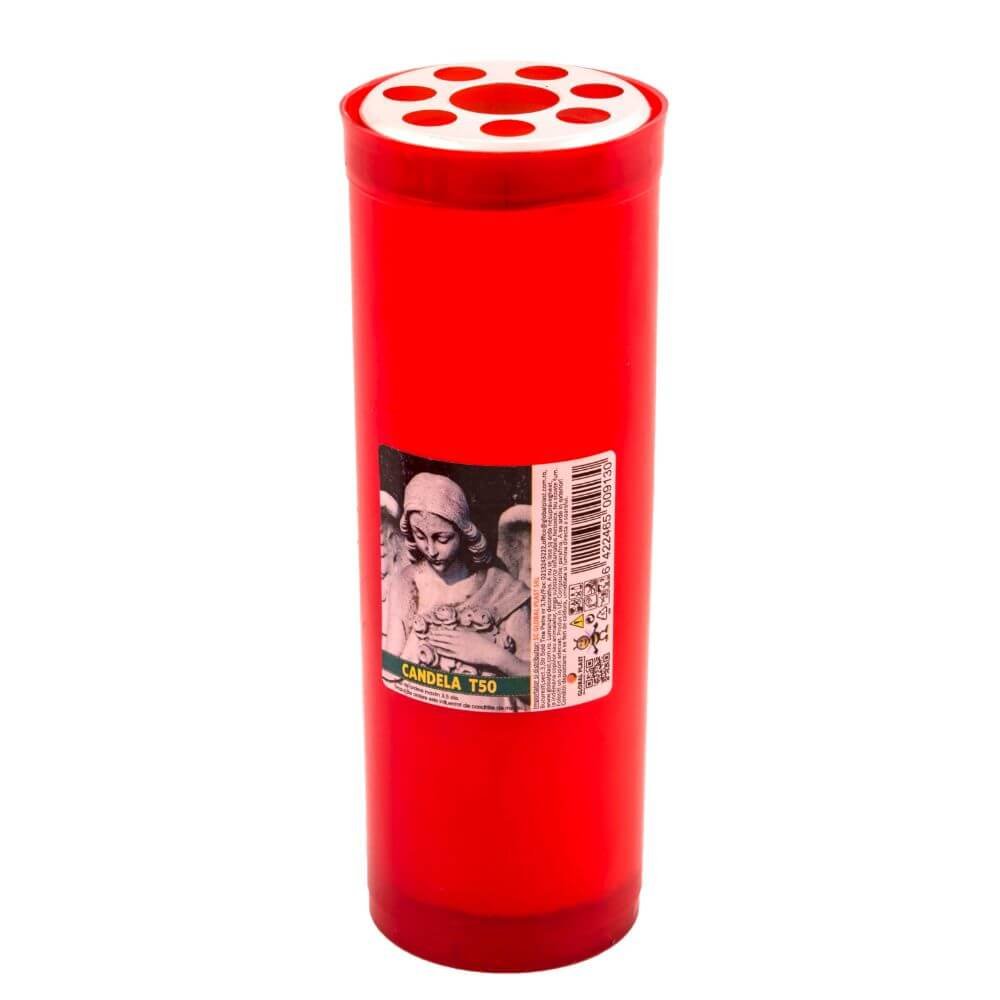 Punem la dispozitie candela tip 50 din parafina, dimensiuni 190x65 mm, cu capac metalic de protectie, prevazuta cu suport din plastic de culoare rosie si cu timp de ardere pana la 84 h. Ideal pentru ceremonii exterioare sau chiar pentru masa de sarbatori.