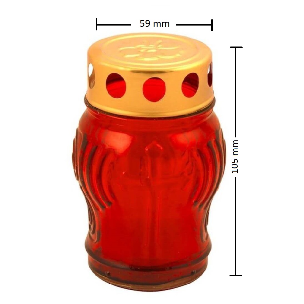 Punem la dispozitie candela din parafina, dimensiuni 105x59 mm, cu capac metalic de protectie, prevazuta cu suport din sticla de culoare rosie si cu timp de ardere pana la 12 h. Ideal pentru ceremonii exterioare sau chiar pentru masa de sarbatori.
