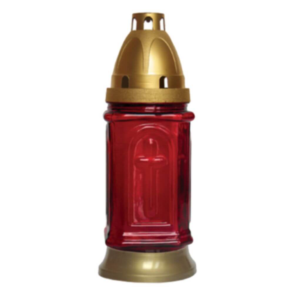 Candela Sticla cu Capac, Timp Ardere 36 h, 115x59 mm, Tip Felinar, Culoare Rosie, Lumanare Candela 36 h, Lumanari si Candele, Candele din Parafina, Candele pentru Exterior, Candele pentru Sarbatori, Candele cu Capac, Candela cu Capac Metalic