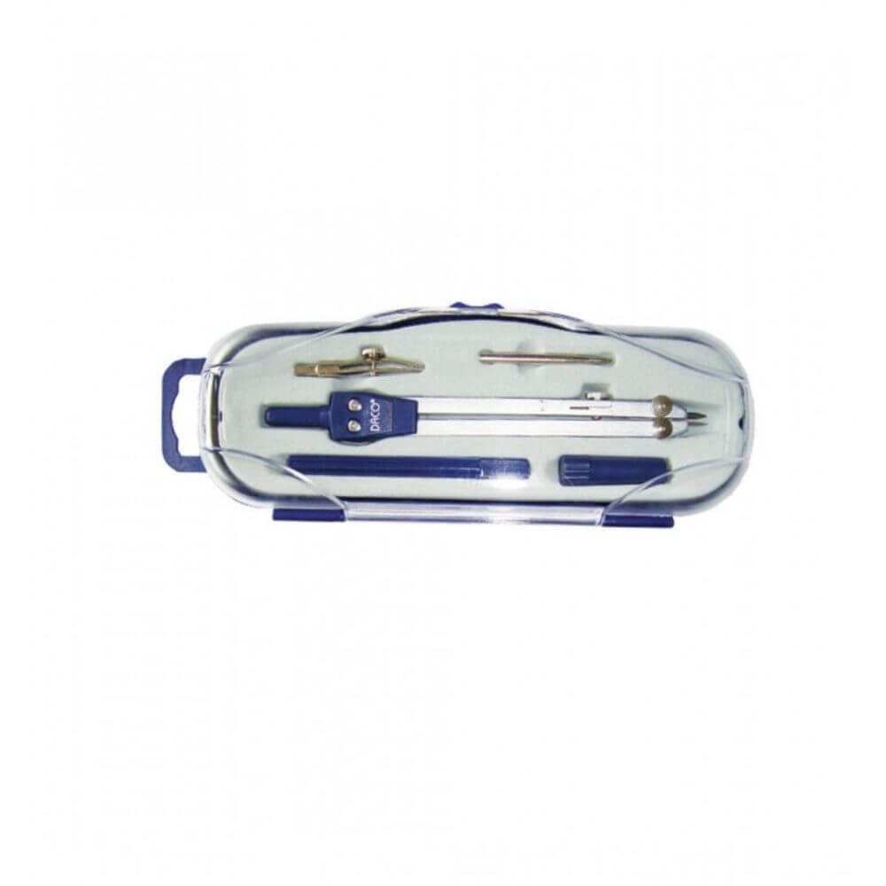 Compas Metalic DACO, Diametru Maxim Cerc 42 cm, 4 Accesorii Incluse, Gri/Albastru, Compas Matematica, Compas Scolar, Compas pentru Scoala, Compas pentru Geometrie, Compas Desen Tehnic, Rechizite Scolare, Instrumente Geometrie