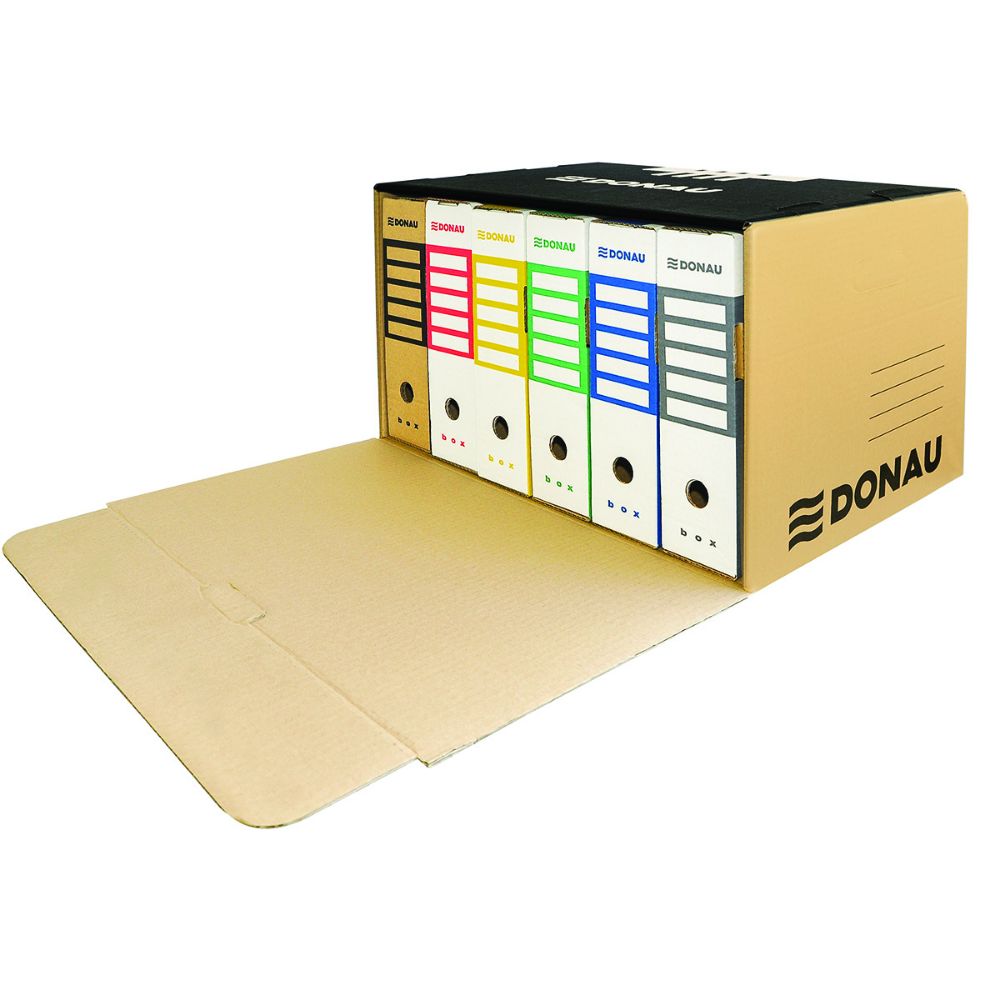 Container Arhivare cu Deschidere Frontala, 360x555x315 mm, Maro, Containere Arhivare DONAU, Capacitate 6 Bibliorafturi