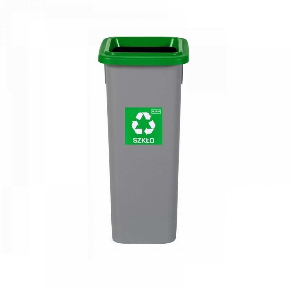 Cos Plastic Reciclare Selectiva, Capacitate 20l, Plafor Fit - Gri Cu Capac Verde - Sticla