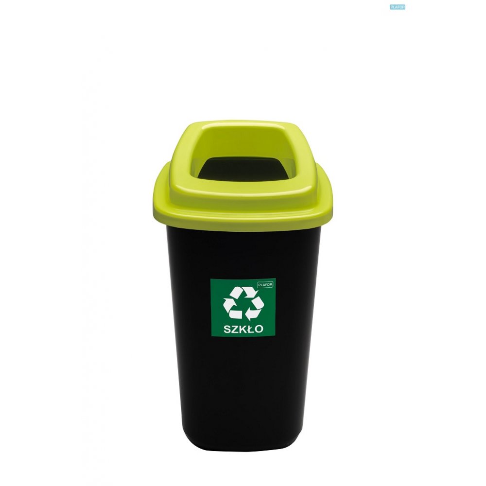 Cos Plastic Reciclare Selectiva, Capacitate 90l, Plafor Sort - Negru Cu Capac Verde - Sticla