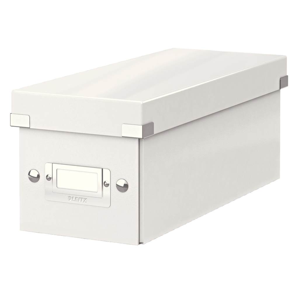 Pentru un birou bine organizat iti propunem cutia de depozitare pentru CD-uri Leitz Click and Store, cu dimensiuni de 143x136x352 mm, realizata din carton solid laminat alb – perfecta pentru birou, casa sau o sala de clasa!