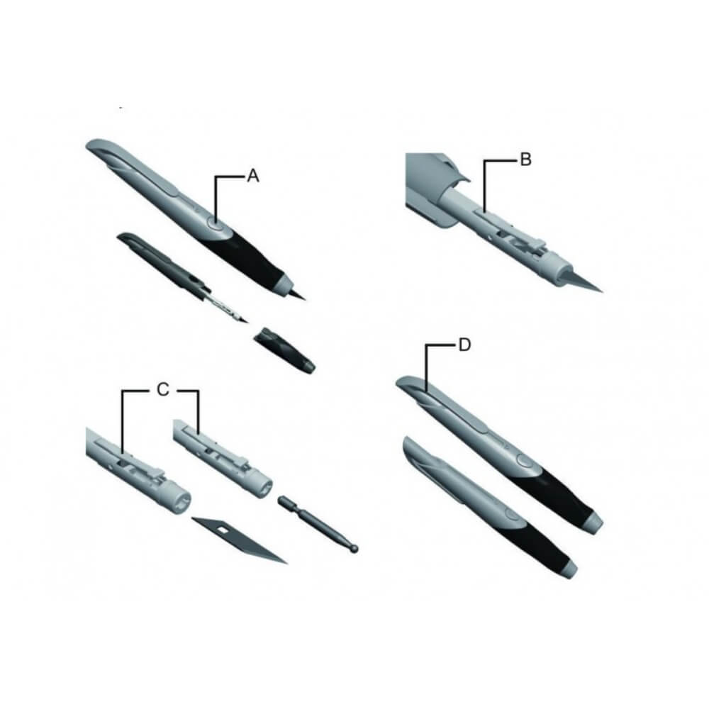 butonul circular de pe corpul cutterului, apoi apasati pe partea de jos a