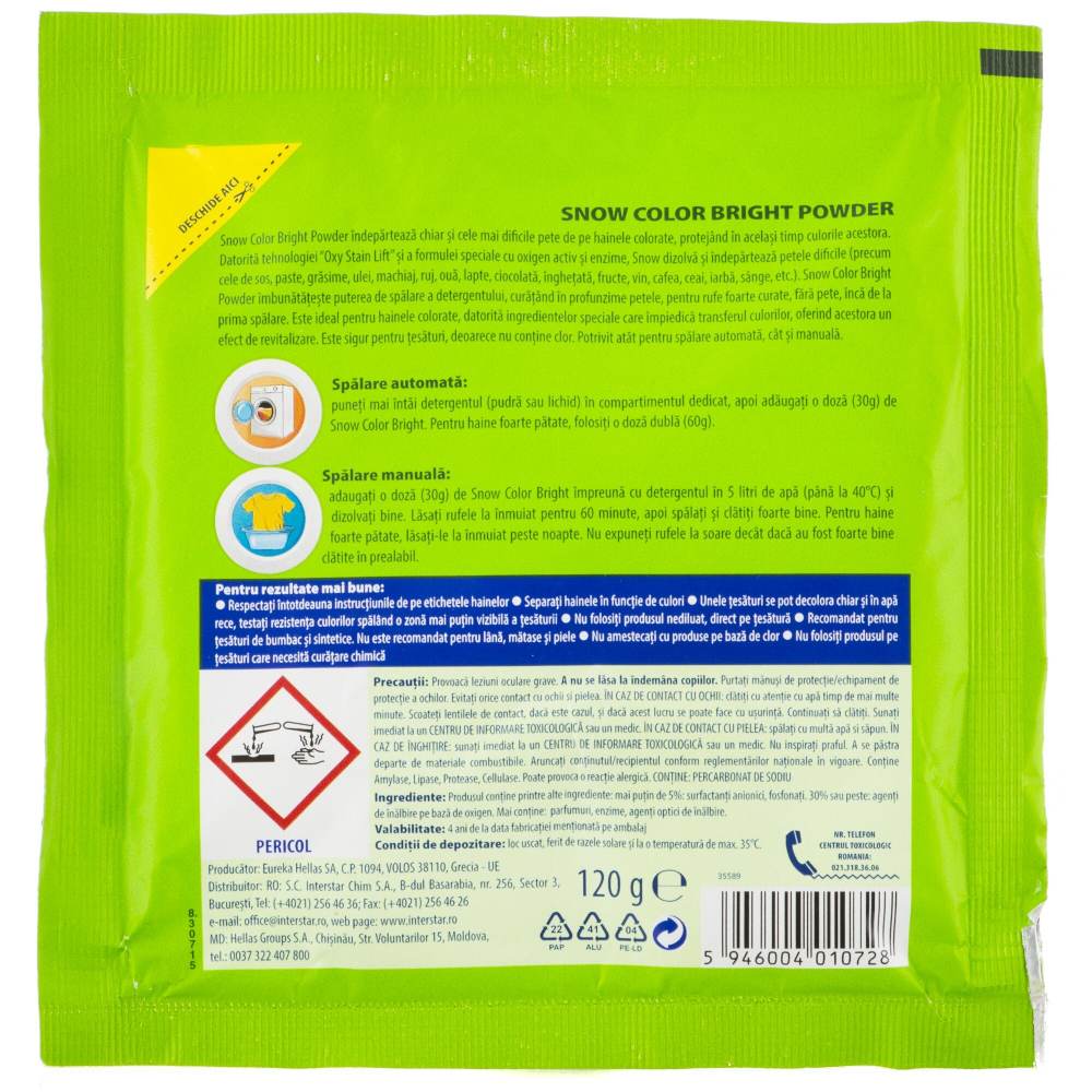 Detergent Pudra pentru Indepartarea Petelor Snow Color Bright, 120 g, 4 Spalari, Pudra Indepartat Pete, Detergenti Pudra, Detergenti Pudra pentru Pete, Pudra Detergent, Detergent Pudra Snow, Pudra Curatat Pete, Detergent Curatat Pete, Solutie Curatat Pete