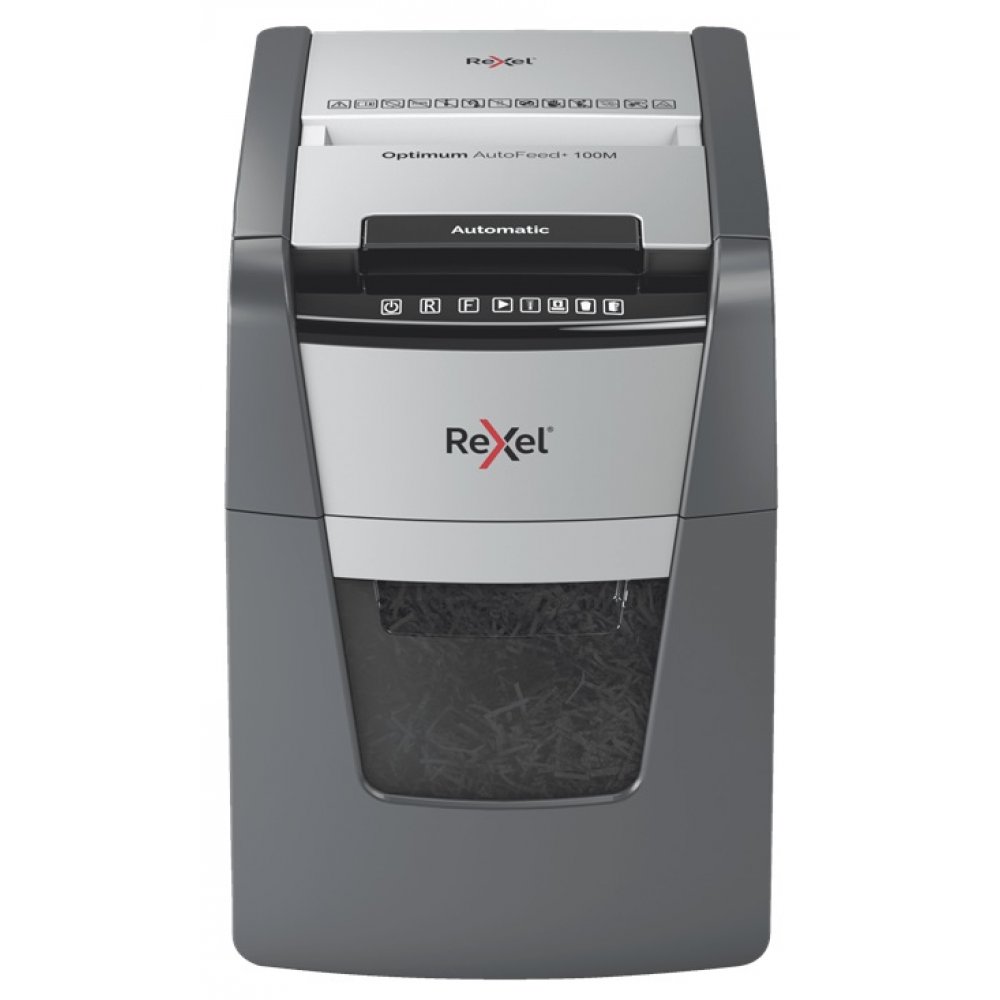 Distrugator Documente Automat Rexel Optimum 100m, P5, Micro-cut (particule), 100 Coli, Cos 34l, Negr