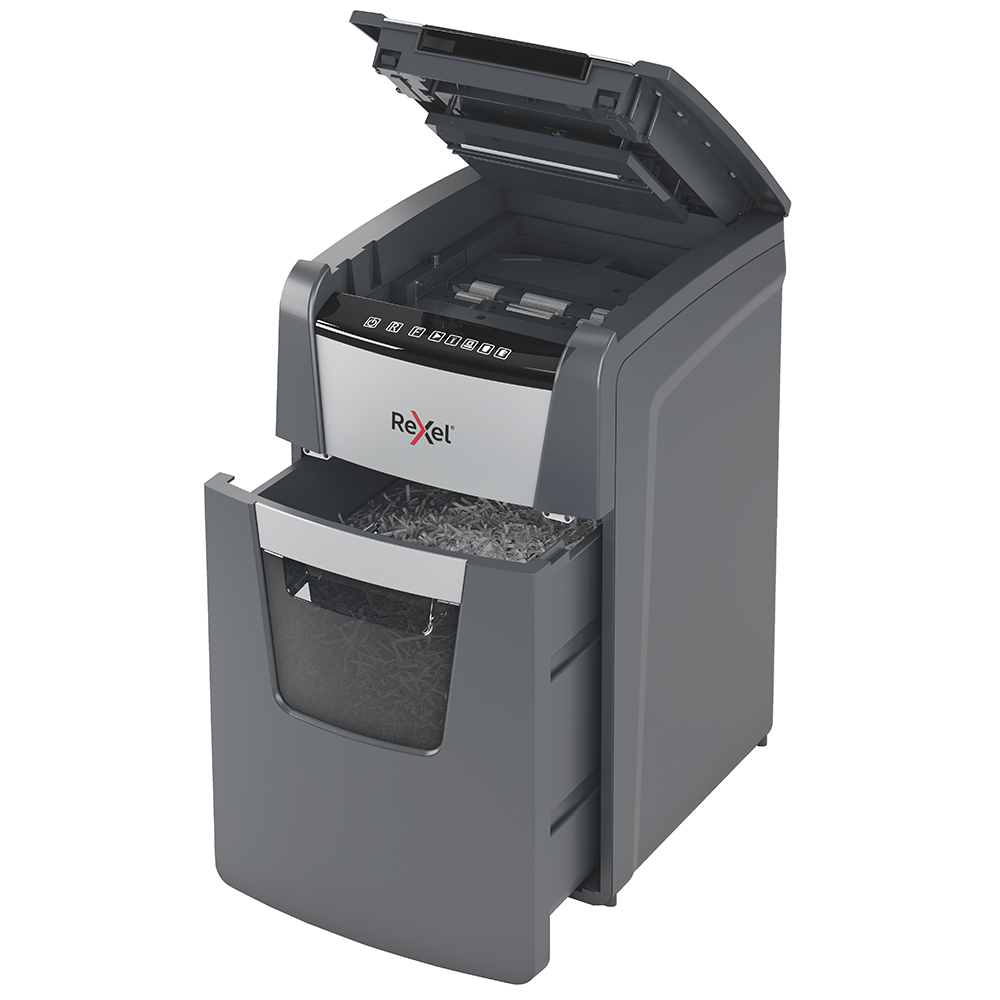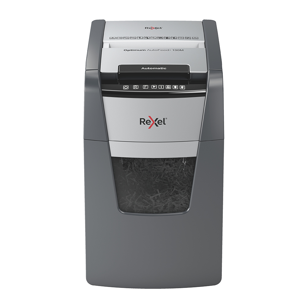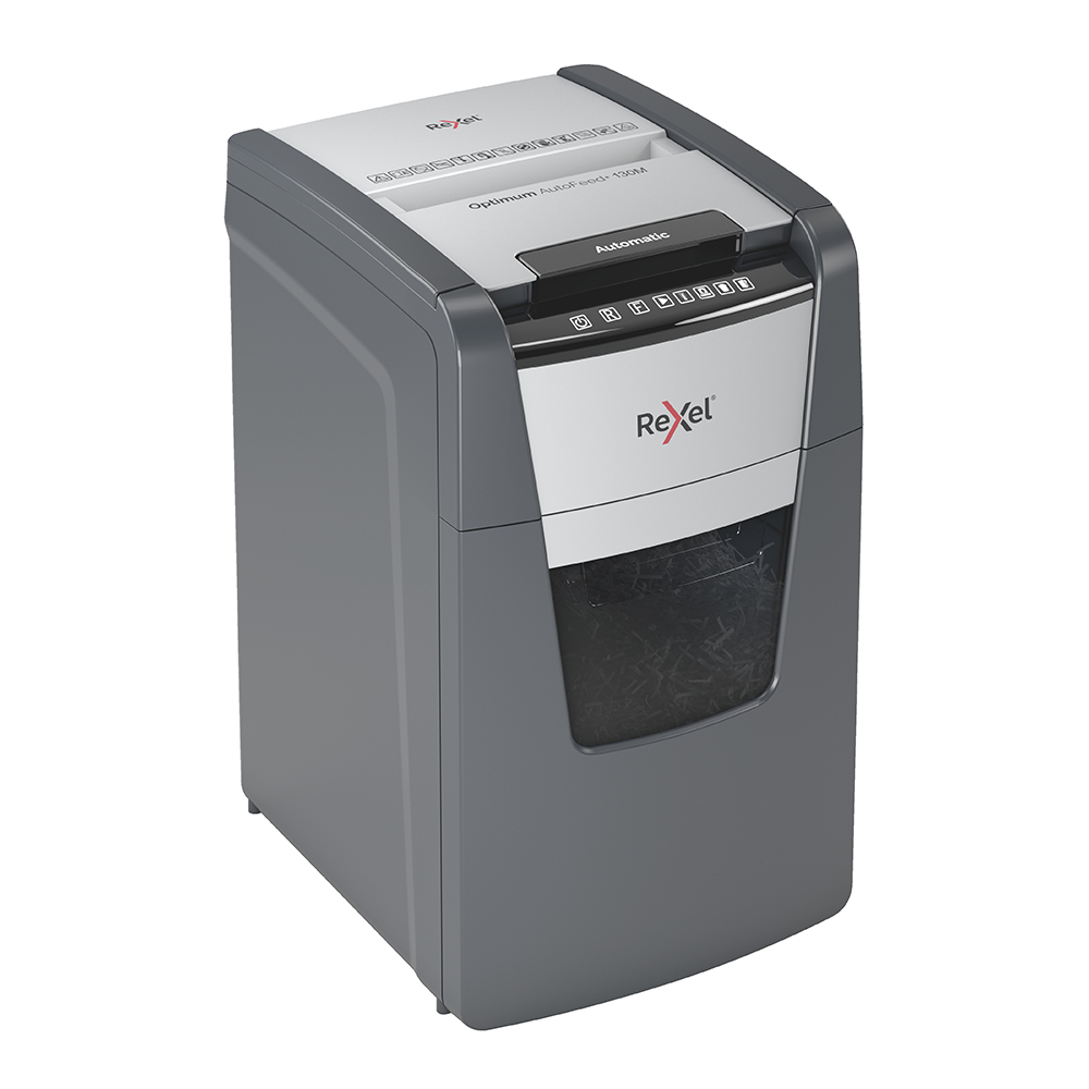 Distrugator documente automat REXEL OPTIMUM 130M, P5, micro-cut (particule), 130 coli, cos 44l, negru-gri