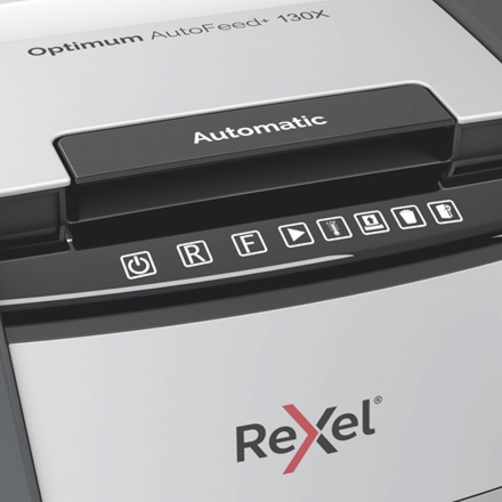Distrugator Documente Automat Rexel Optimum 130x, P4, Cross-cut (confeti), 130 Coli, Cos 44l, Negru-