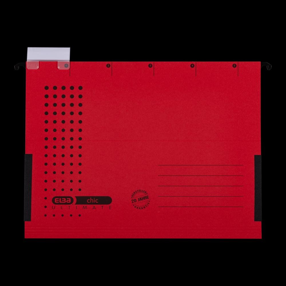Dosar Suspendat Cu Burduf Elba Ultimate A4, Carton 240g/mp, Blue Angel, Capacitate 330 File, Porteticheta, Culoare Rosu