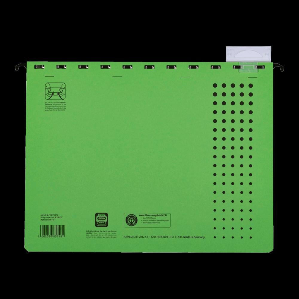 Dosar Suspendat Cu Sina Elba Ultimate A4, Carton 240g/mp, Blue Angel, Capacitate 200 File, Orificiu Deget Pentru Manevrare, Porteticheta, Culoare Verde