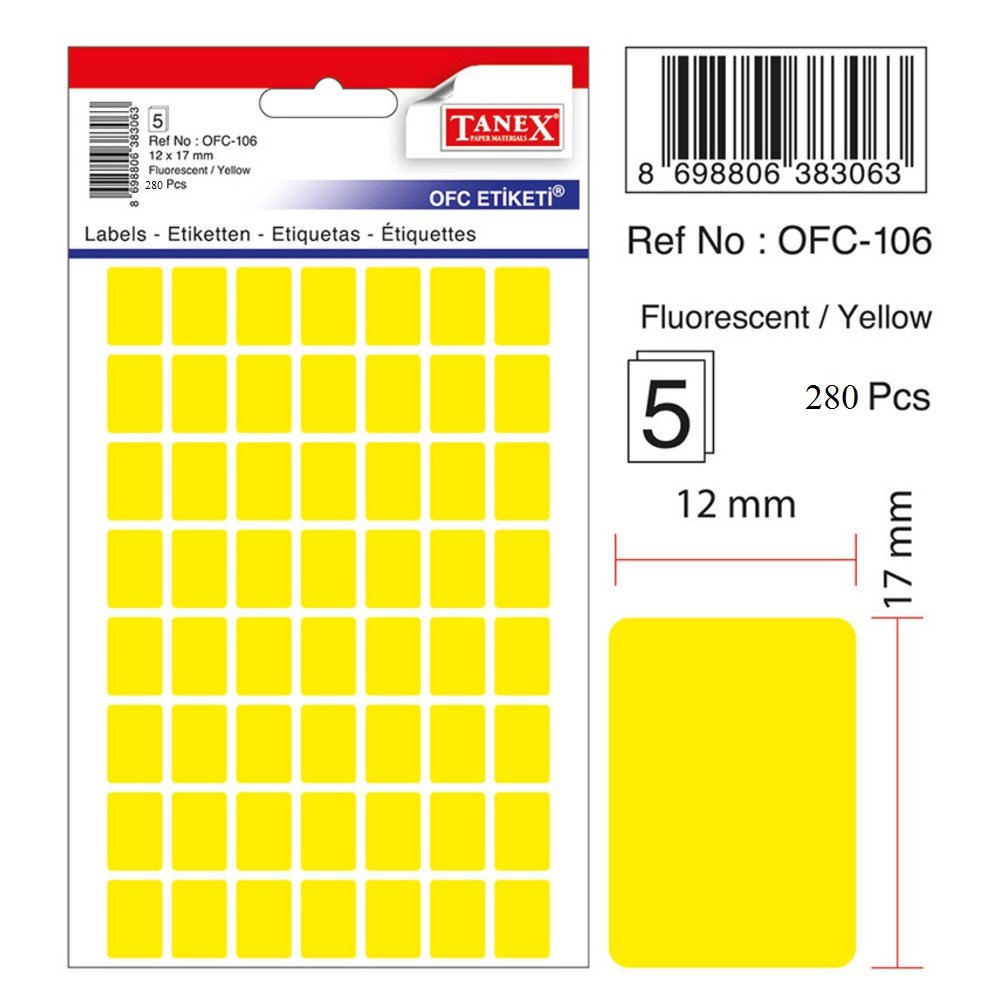 Etichete Autoadezive Color, 12 X 17 Mm, 280 Buc/set, Tanex - Galben Fluorescent
