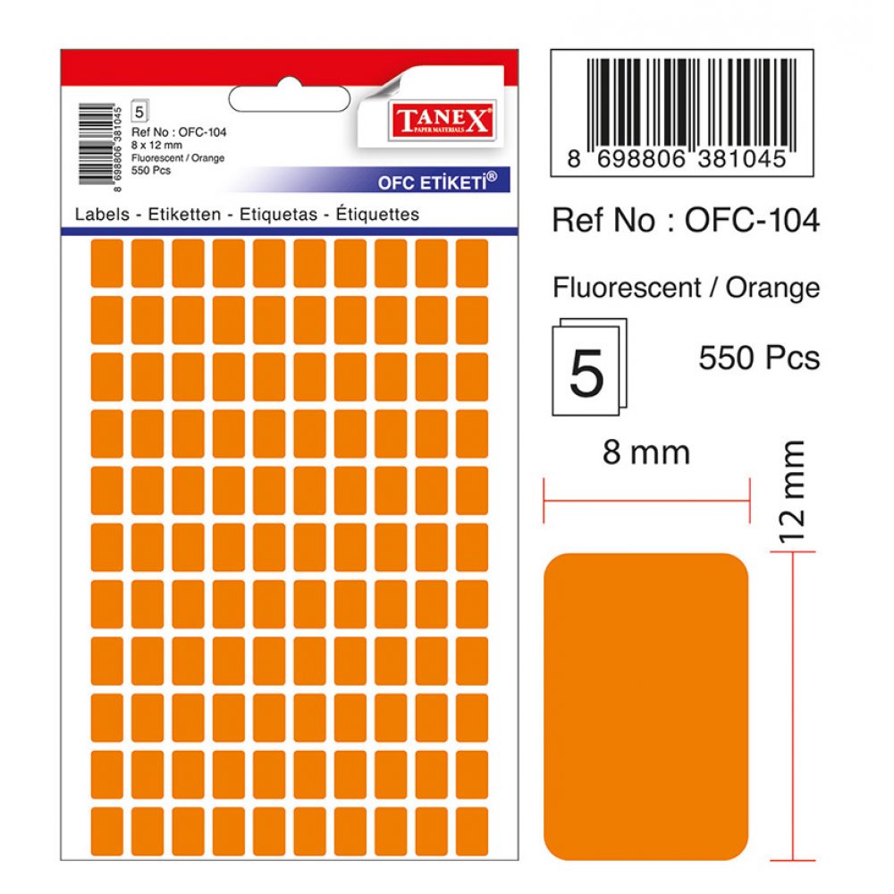 Etichete Autoadezive Color, 8 X 12 Mm, 550 Buc/set, Tanex - Orange Fluorescent