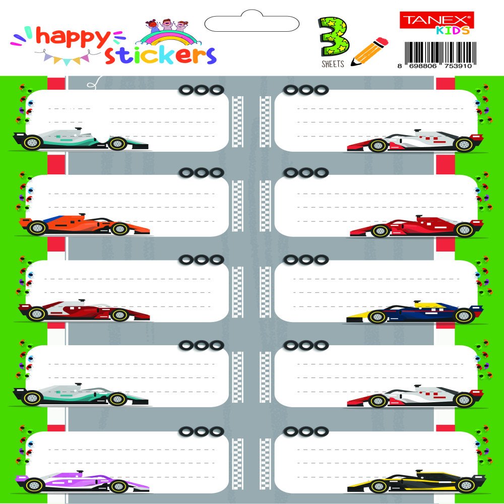 Etichete Scolare 30/set Masini De Curse Tls-749 Tanex