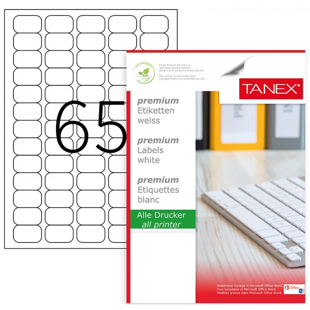 Etichete Transparente Autoadezive, 65/a4, 38.1 X 21.2mm, 25 Coli/top, Tanex - Colturi Rotunjite