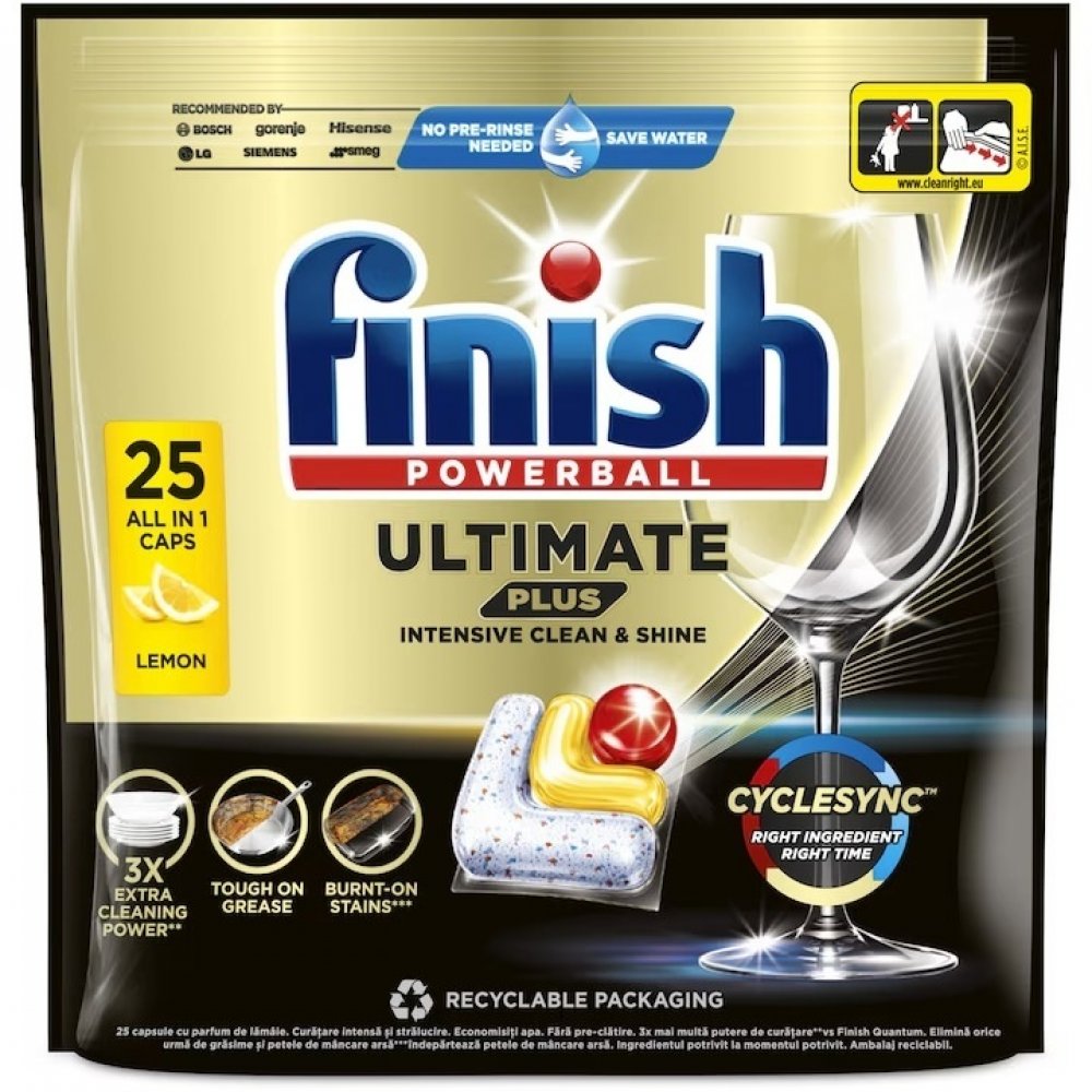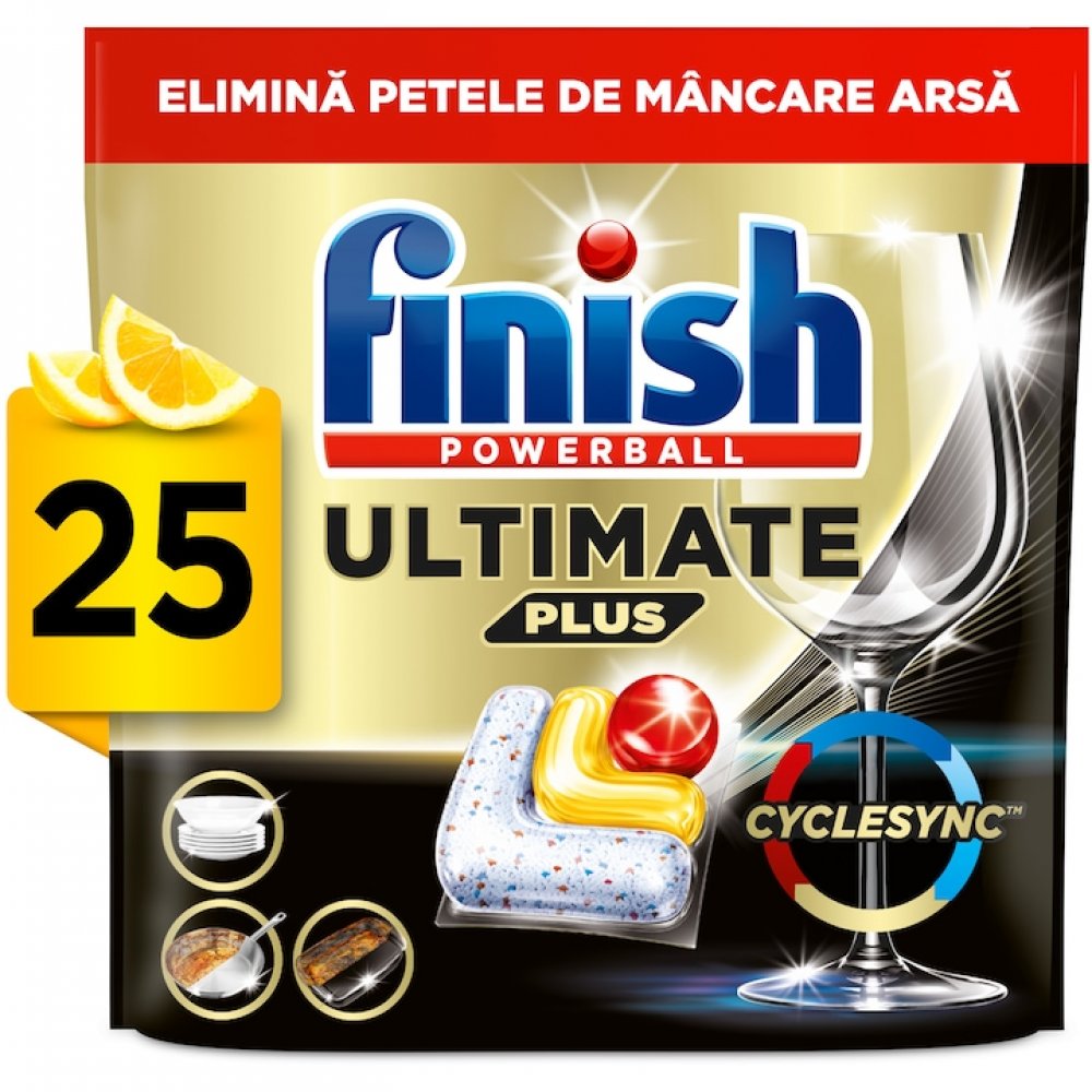 Finish Ultimate Plus, Lemon, 25 Spalari, Detergent Capsule Pentru Masina De Spalat Vase