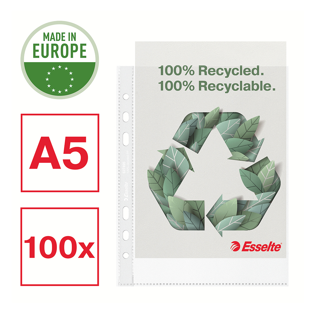 Folie de protectie Esselte Recycled, PP reciclat, A5, 70 mic, 100 bucati/cutie, standard