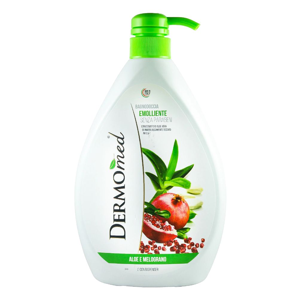 Gel de Dus DERMOMED cu Parfum de Aloe si Rodii, 1 L, Gel de Dus Hidratant, Gel de Dus Unisex, Gel de Corp, Gel pentru Dus, Gel de Dus cu Pompita