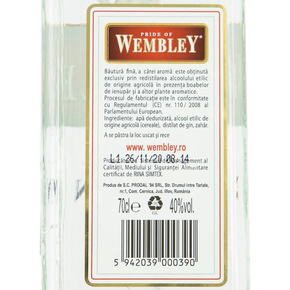 Gin Wembley London Dry, Alcool 40%, Cantitate 700 ml