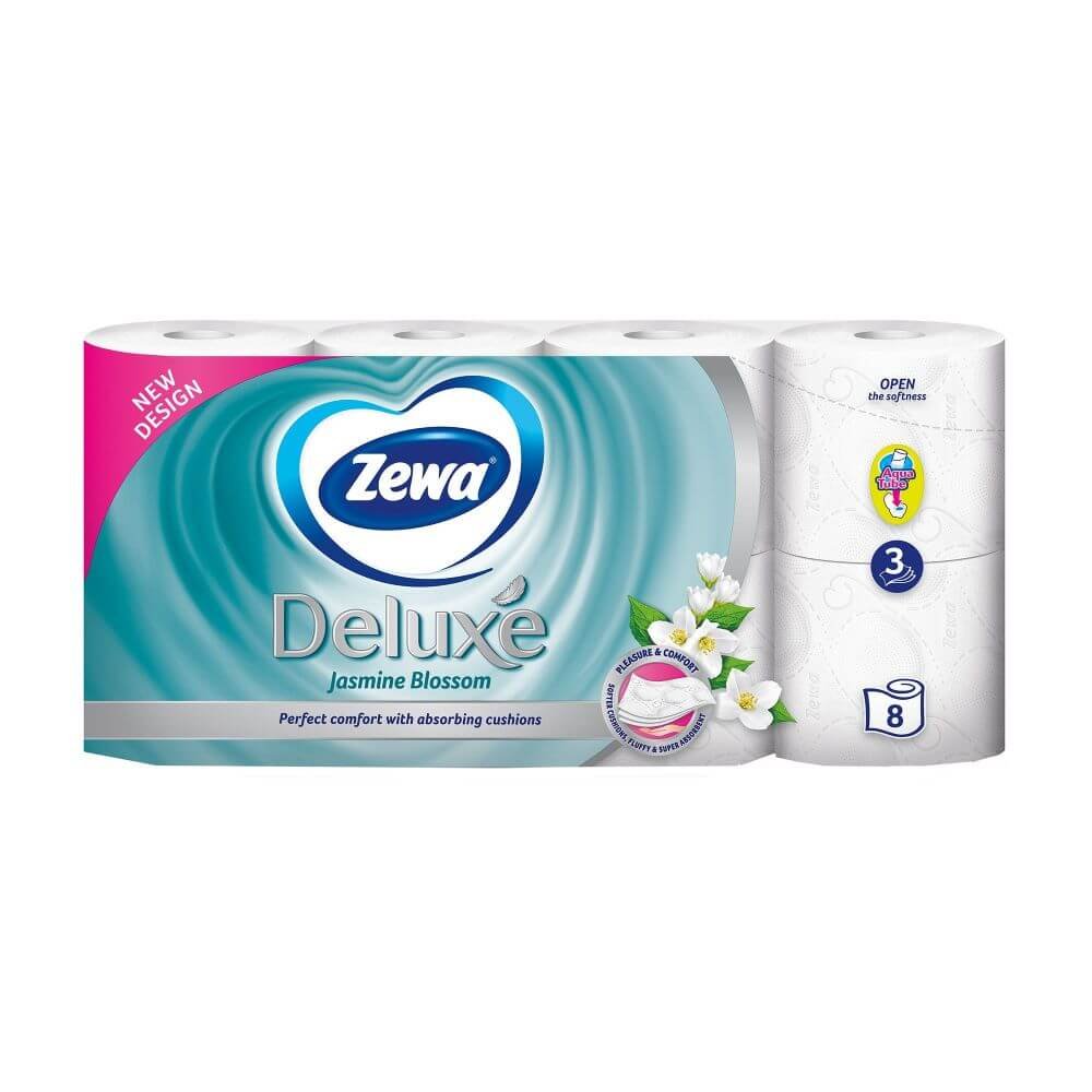 Hartie Igienica Alba Zewa Deluxe, 3 Straturi, 8 Role/Bax, 150 Foi/Rola, Latime 94 cm, Parfum de Iasomie, Hartie Parfumata Iasomie, Hartie Igienica Parfumata, Hartie Igienica la Bax, Hartie Igienica Alba, Hartie Igienica Zewa