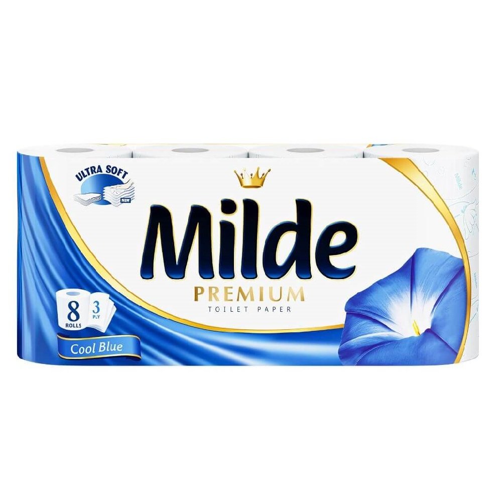 Hartie Igienica Parfumata Milde Cool Blue, 3 Straturi, 8 Role/Bax, 150 Foi/Rola, Latime 95 cm, Hartie cu Parfum Floral, Hartie Igienica Parfumata, Hartie Igienica la Bax, Hartie Igienica Alba, Hartie Igienica Milde