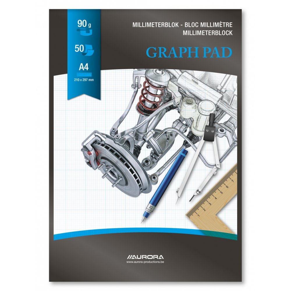 Hartie Milimetrica A4, 50 File - 90g/mp, Aurora Raphael - Fond Albastru