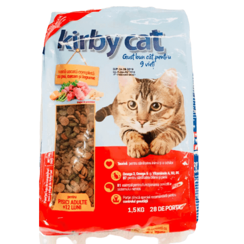 Hrana pentru Pisici Kirby Cat cu Curcan si Legume, 1.5kg, Hrana Pisici Kirby Cat, Hrana Pisici Adulte, Hrana pentru Pisici Adulte, Mancare pentru Pisici, Granule pentru Pisici, Bobite pentru Pisici