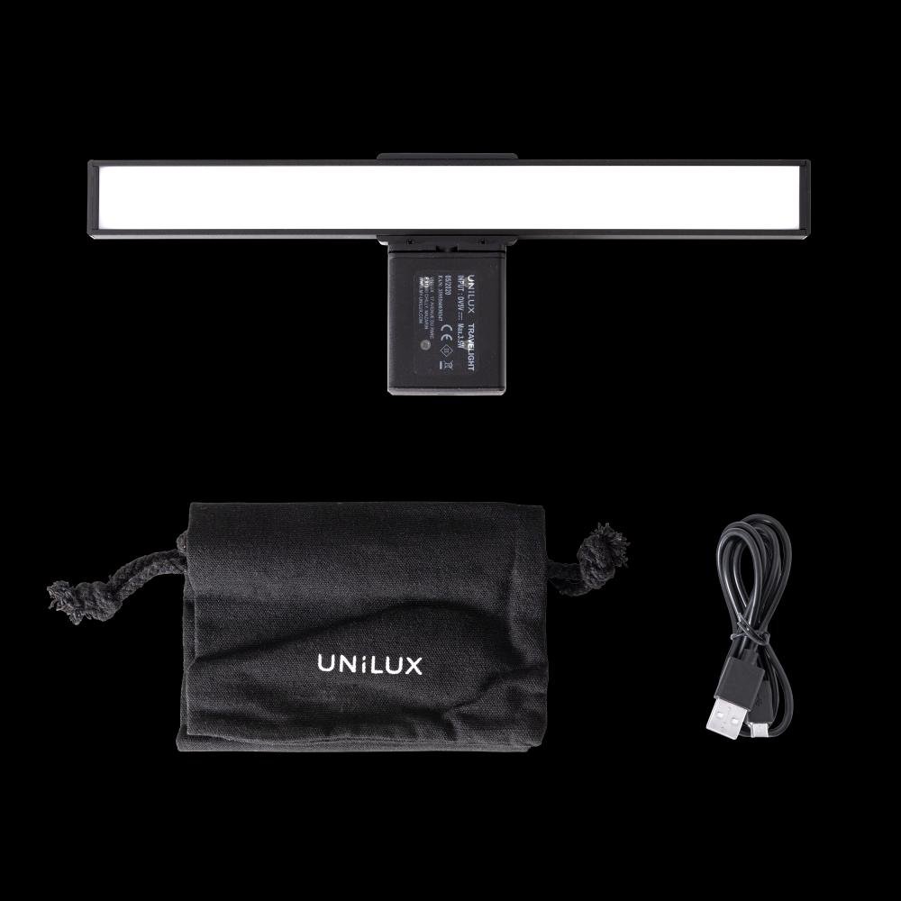 Lampa Unilux Led Travelight, Sistem Prindere Pe Laptop, Intensitate Reglabila, Lumina Rece/cald, Alimentare Usb 5v/1a, Cablu 1m, Portabila, Husa Inclusa, Aluminiu/abs, Culoare Negru