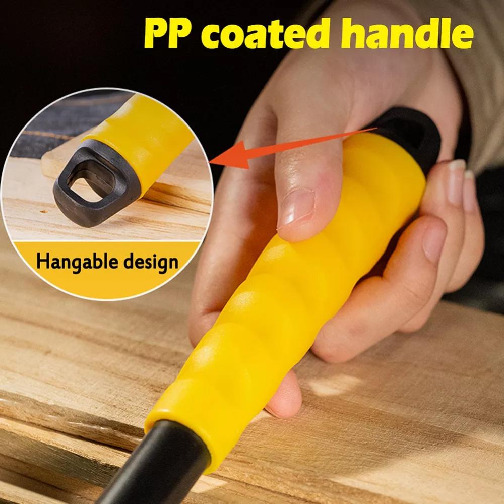 - Manerul este acoperit cu un material antiderapant si amortizor, facandu-l sa se potriveasca perfect in palma si impiedicand alunecarea lopetii din mana in timpul folosirii;