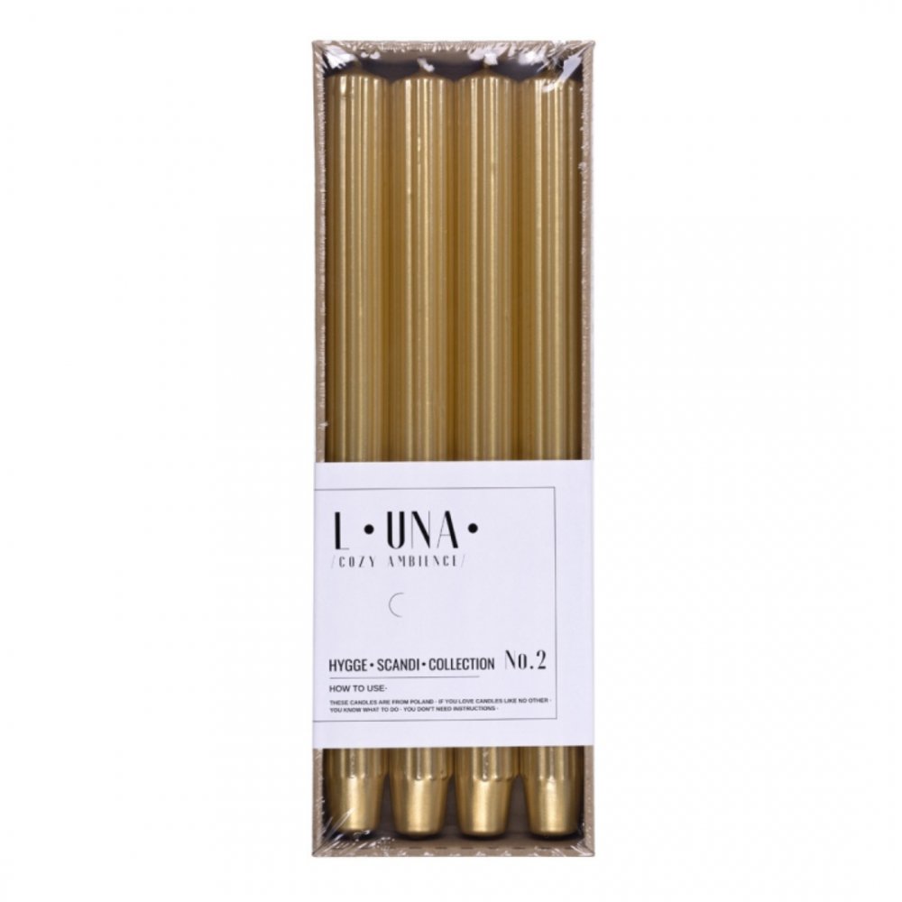 Lumanari Cu Dungi, Pentru Cina, Lacuite, 25 X 300mm, 4 Buc/set, Donau Home - Aurii