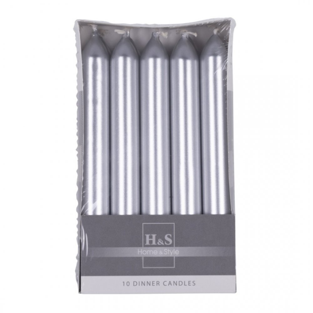 Lumanari Pentru Cina, Lacuite, 20 X 170mm, 10 Buc/set, Donau Home - Argintii