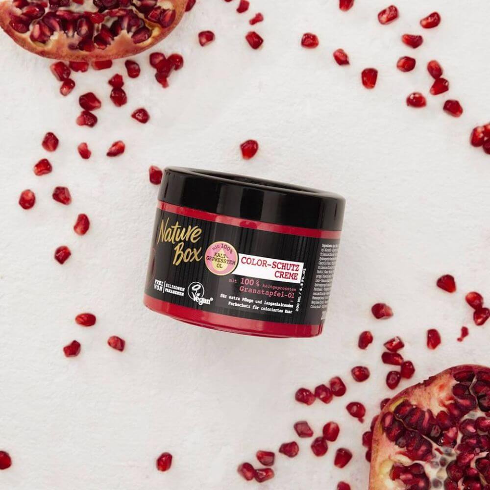 Masca Par NATURE BOX Pomegranate Oil, 200 ml, Ulei Presat la Rece din Rodie, Masca Par Vegana, Masca Par Vopsit NATURE BOX, Masca Par Vopsit cu Extracte Naturale, Masti Naturale de Par, Masca Par Fara Parabeni