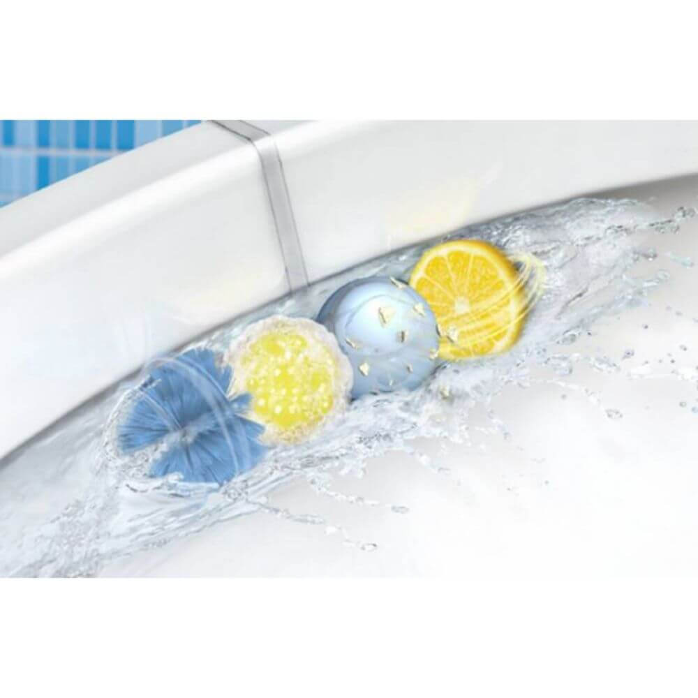 Odorizant de Toaleta Solid Bref Power Aktiv, 3 Buc/Set, Parfum de Lamaie, 3 x 50 g, Odorizant Toaleta, Odorizant WC, Bloc Odorizant Toaleta, Odorizant Anticalcar pentru WC, Odorizant pentru Toaleta cu Suport, Bile Odorizante WC