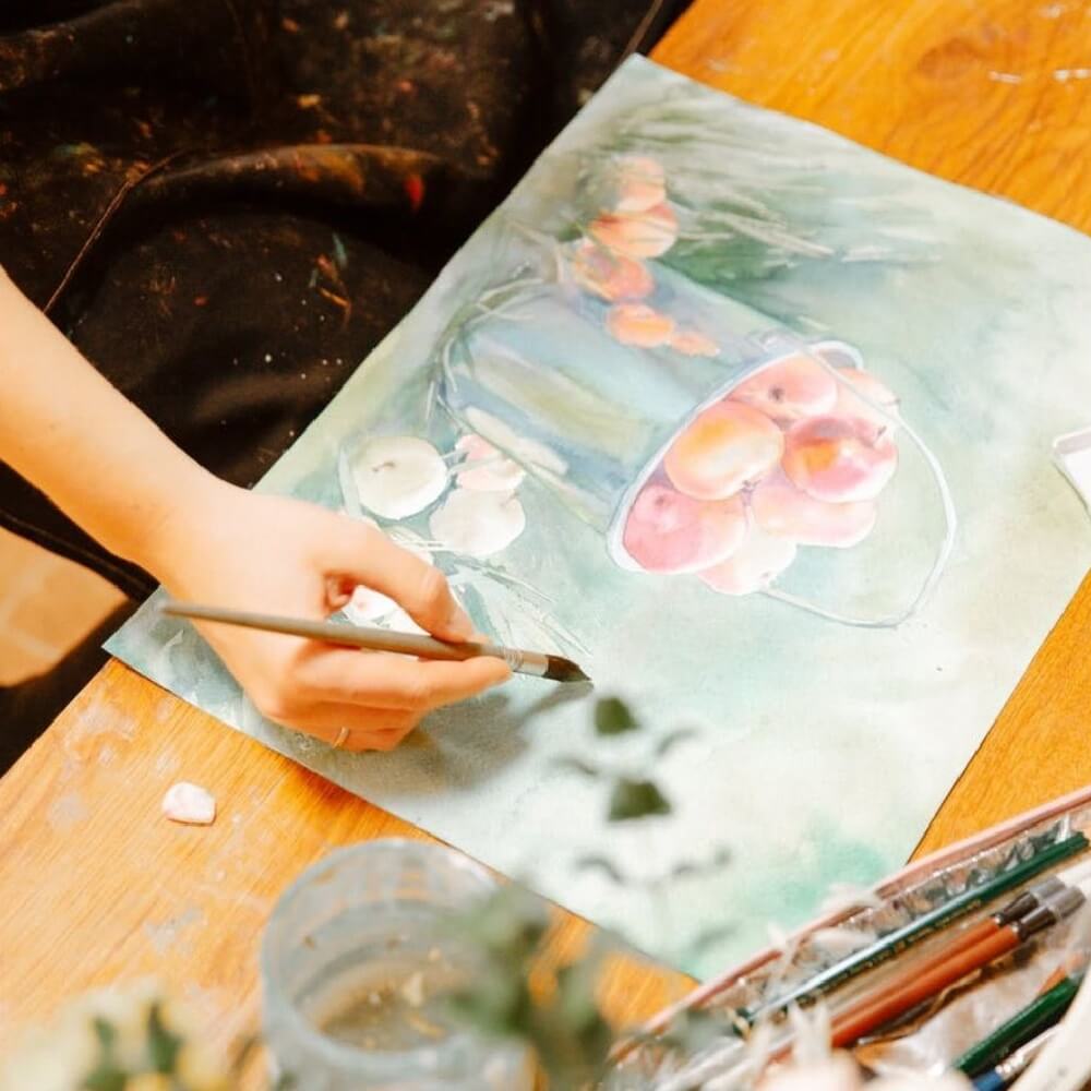 pictura in acrilic sau alte culori solubile in apa: tempera, gouache, acuarela;