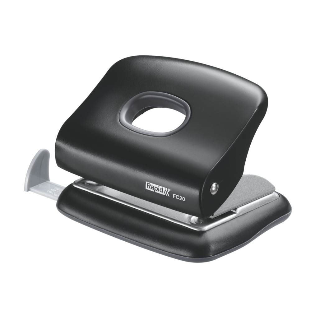 Perforator Rapid FC20, Capacitate 20 Coli, Plastic/Metal, Negru, Perforator pentru Hartie, Perforator de Hartie, Perforatoare Hartie, Perforatoare Birou, Perforatoare de Hartie, Perforatoare 20 Coli, Perforatoare Scoala, Perforatoare Rapid