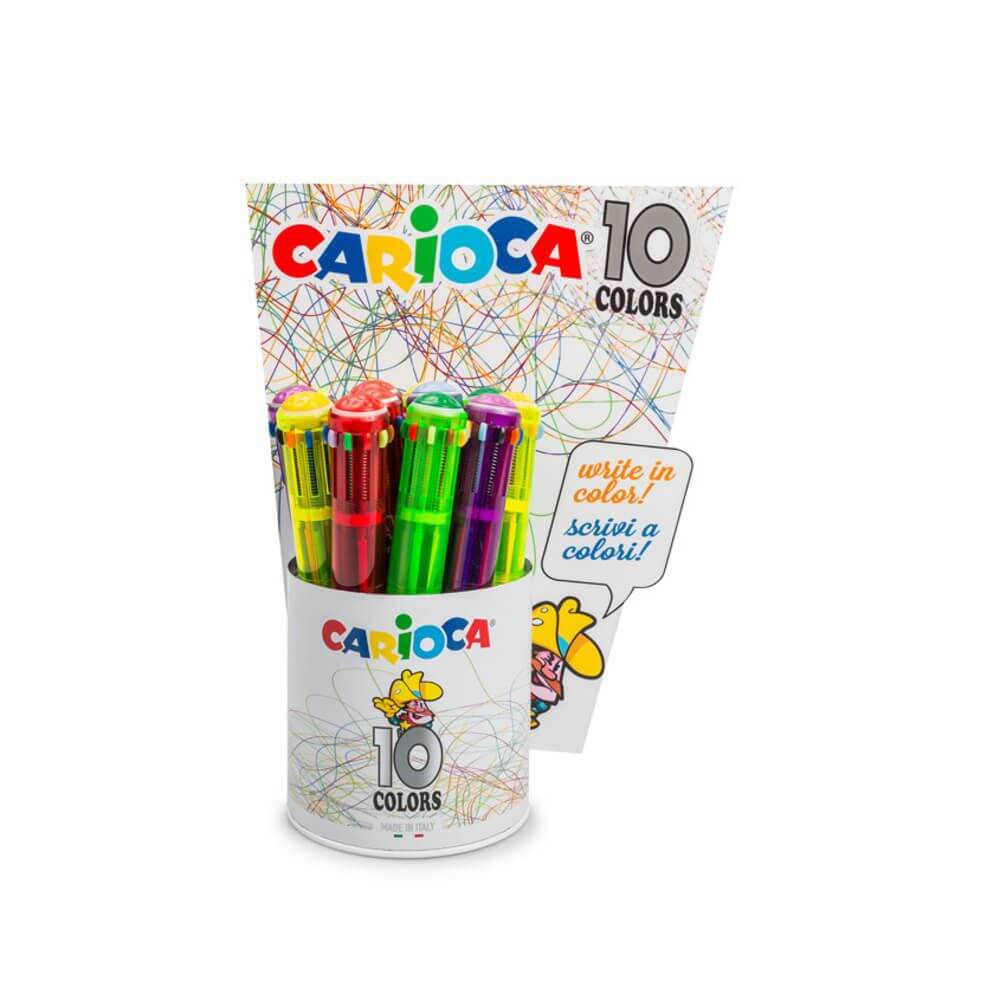 Iti oferim pix CARIOCA cu 10 culori, corp din plastic rigid, mecanism retractabil, ideal atat pentru o scriere curata si eleganta, cat si pentru sublinieri importante, desene, notite personalizate, evidentierea unor mesaje.