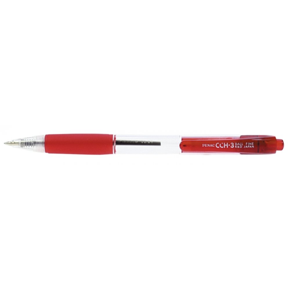 Pix Penac Cch-3, Cu Mecanism, Rubber Grip, 0.7mm, Corp Transparent - Scriere Rosie