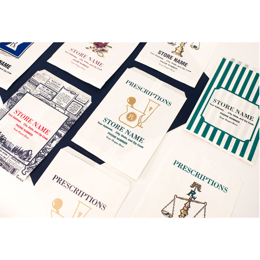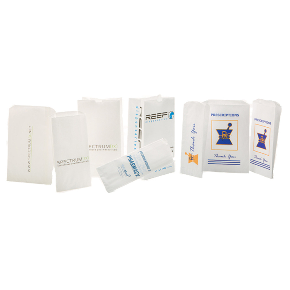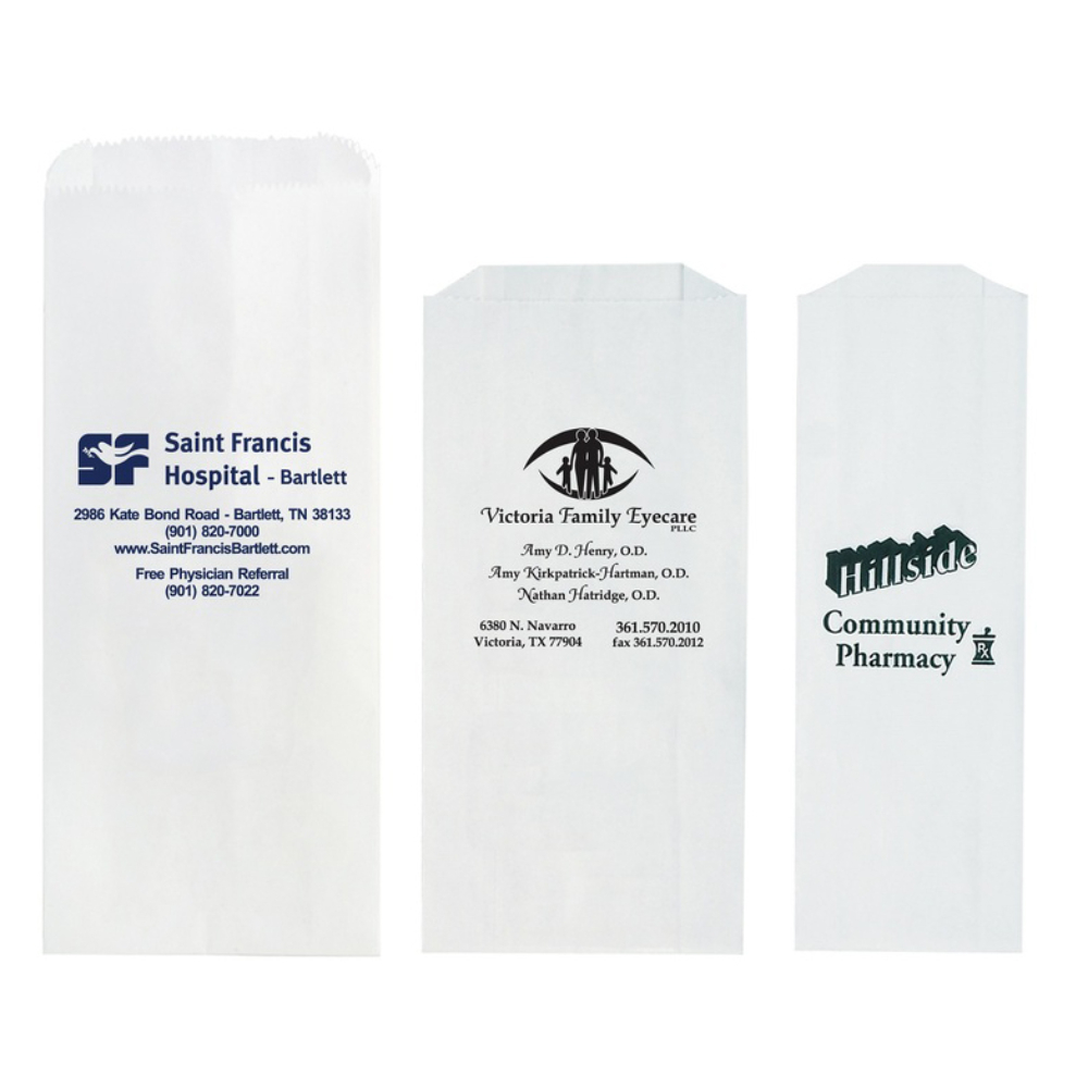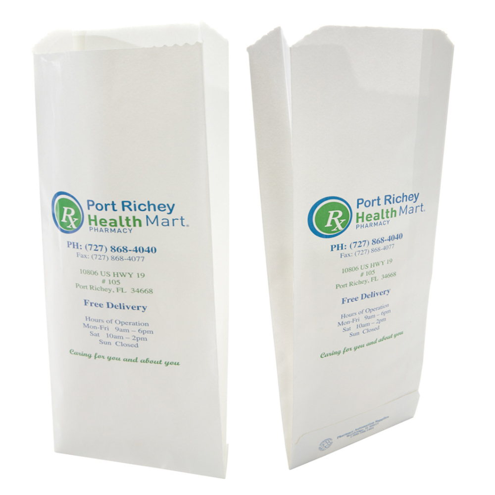 Pungi din Hartie pentru Farmacie Personalizate, Tipar 1, 2 Culori, Dimensiune 9x15 cm, Hartie Kraft Alba 35 g/m²